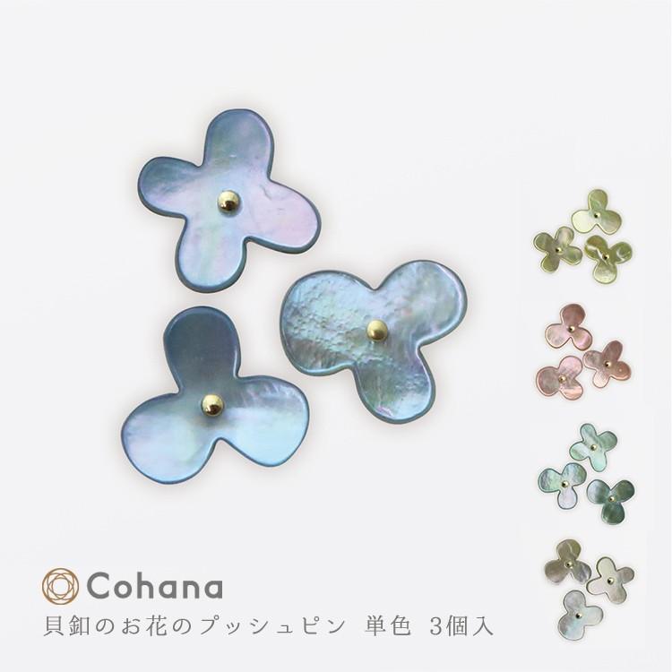 コハナ Cohana 貝釦のお花のプッシュピン 単色 3個入 画びょう 画鋲 貝
